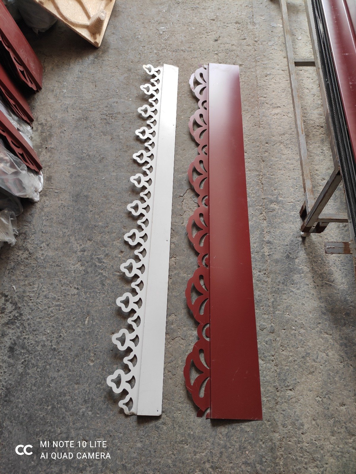 Süslük :050 mm kalınlığında 150 mm -250 mm genişliğinde istenilen her ölçüde üre üretimi mümkün olan firmamızın kendine has bir üründür Alın kapama ağırlığı 0,60 – 1 kg/mt dür.   Alın kapama Binalarda Oluk  ve alın tahtası olan bölümlerin üstüne kullanılan bir üründür  binayı çatı ile bir bütün hale gelmesi için üretilmiş olan bir ürünüdür